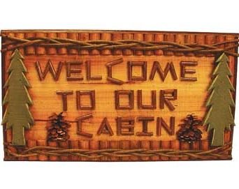 Vertical welcome plaque for your home or cabin that is hand-crafted of wood with excellent detail and natural color that is sure to look good on any wall. 18" tall x 6.5" wide