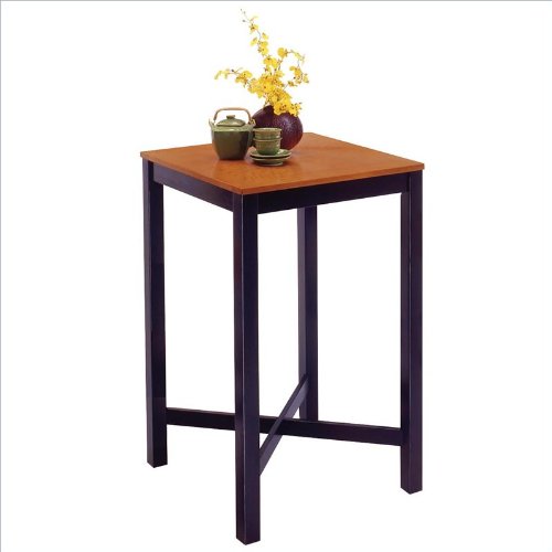 This home styles bar table with veneer top is constructed of Asian hardwood. Comes with black and cottage oak finish. The table top is constructed with hand selected veneers and the legs are of solid wood. A clear coat finish helps to guard against wear from normal use. This is a great option for casual dining and libation. Easy assembly. Measures 26-3/4-inch width by 26-3/4-inch depth by 45-inch height.