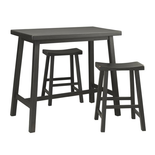This is a great table. Just the right height for us. Note: don't let the photo confuse you into thinking it includes two chairs! (this includes only the table). You have to order the chairs separate.